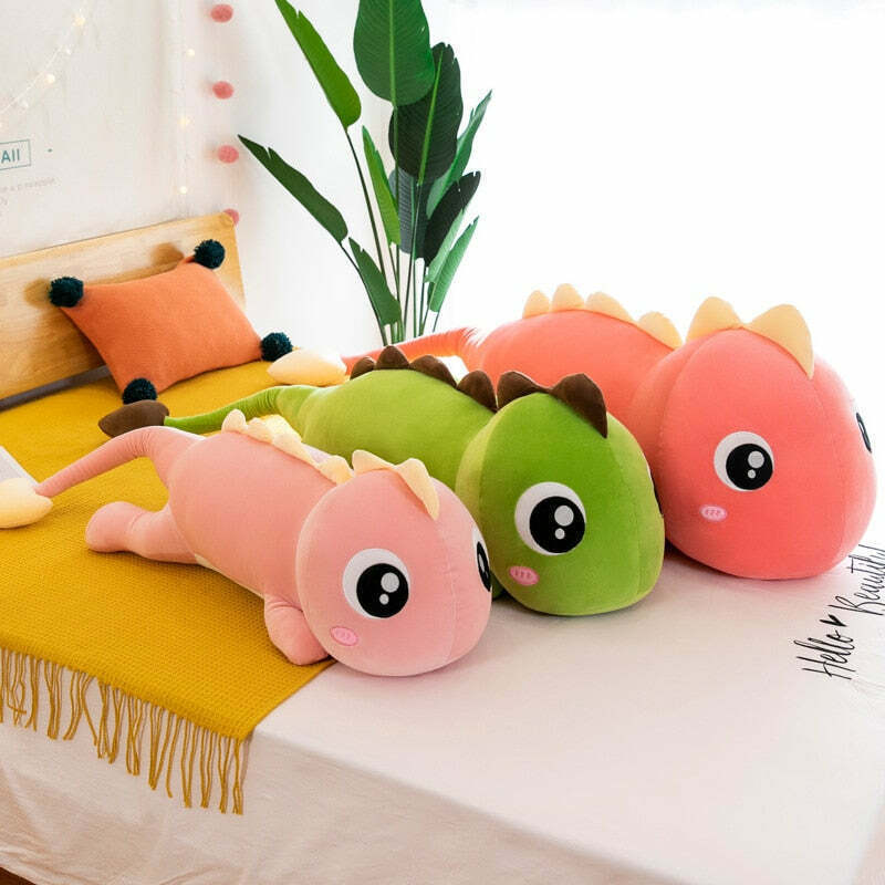 Este encantador dinossauro vem com olhos grandes e simpáticos, corpo macio, fofinho e com uma textura externa aveludada. Tudo para que você possa se desestressar ainda mais ao deitar com seu Pelúcia depois de um dia super cansativo.
